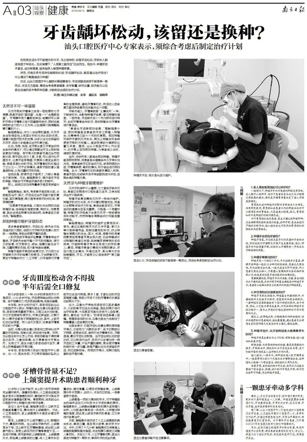 “如果患牙既能保留,口腔狀況也同時(shí)達(dá)到種植標(biāo)準(zhǔn),但保留的難度較高,耗時(shí)長(zhǎng),花費(fèi)更高,醫(yī)生會(huì)將各種情況詳細(xì)說(shuō)明,由患者自己做決定。”解超勇說(shuō)。