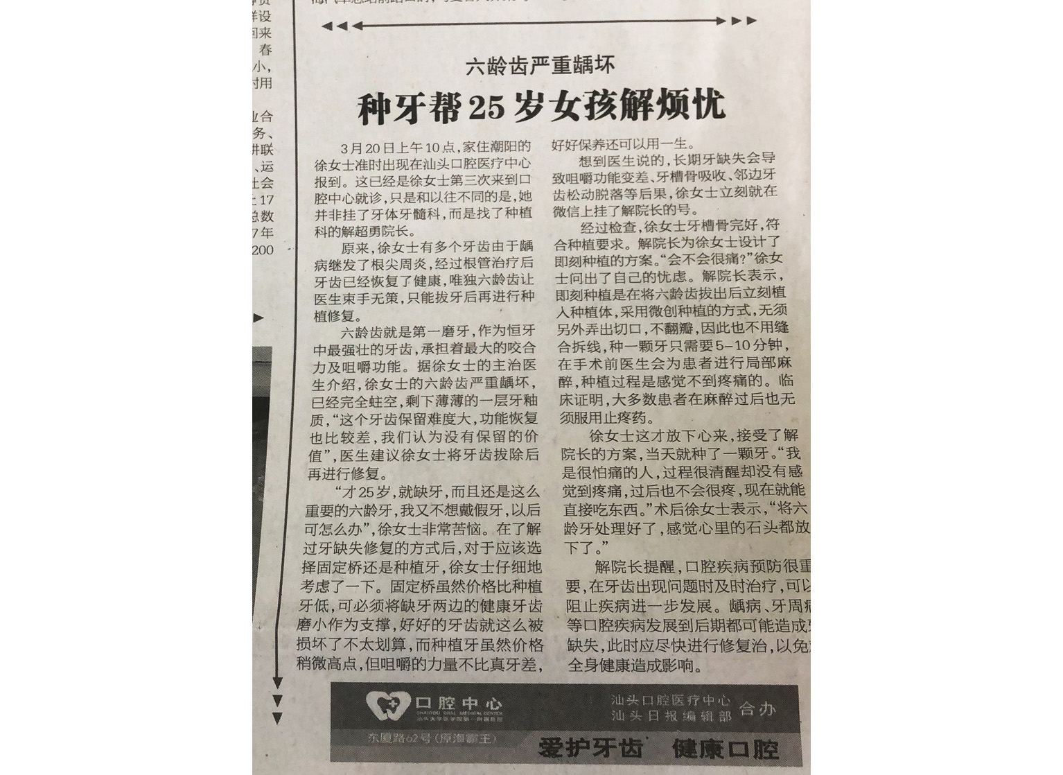汕頭日報 | 種牙幫25歲女孩解煩憂