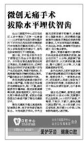 汕頭日?qǐng)?bào) | 微創(chuàng)無(wú)痛手術(shù)拔除水平埋伏智齒