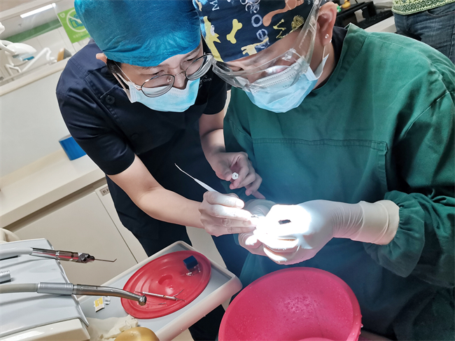 汕頭日?qǐng)?bào) | 顯微鏡下疏通鈣化根管 患者慢性牙髓炎獲得根治2024-08