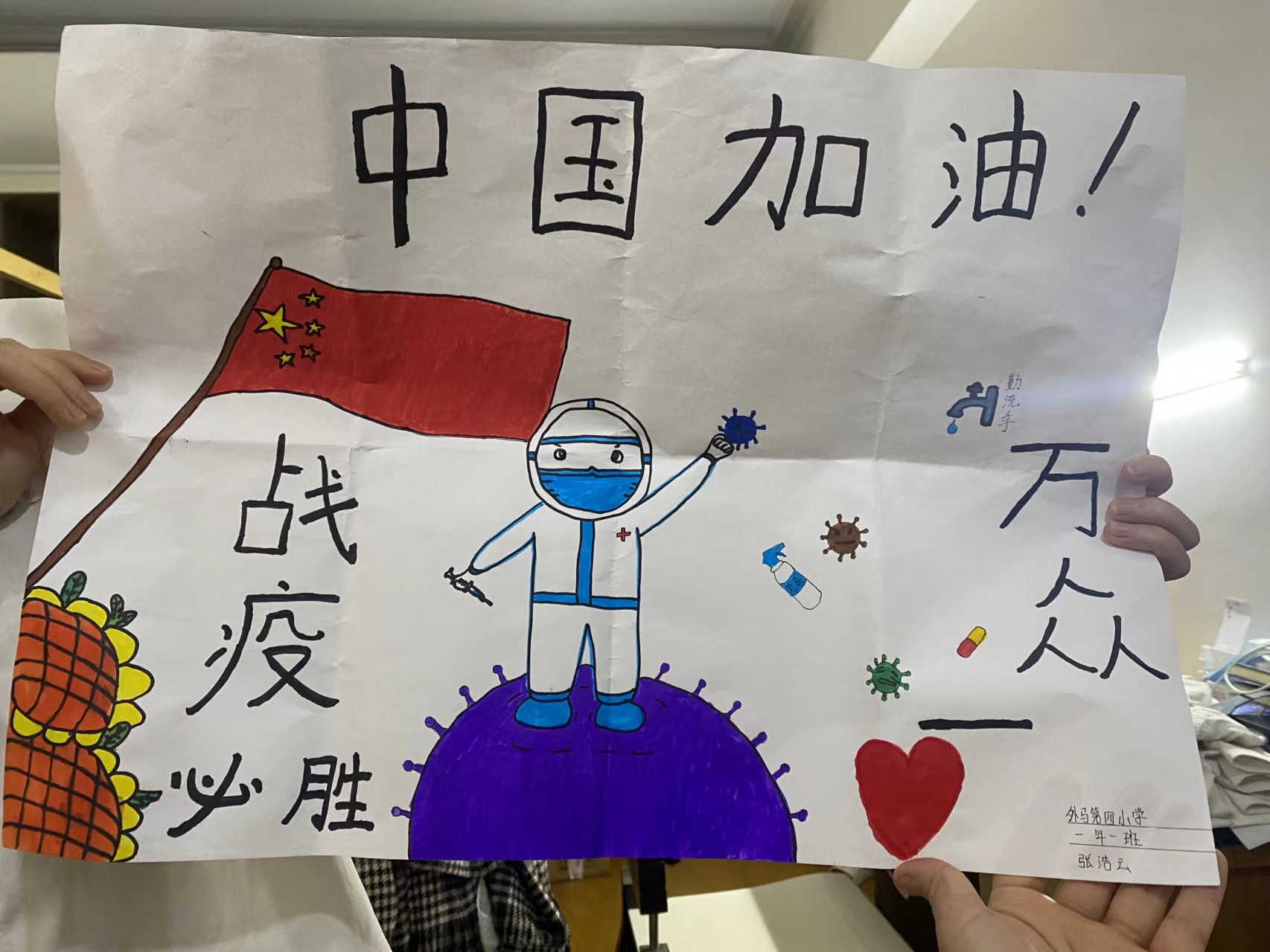 11月5日,我院核酸采樣隊在外馬第四小學(xué)核酸采集點進行采樣工作時,收到了一份珍貴的禮物——來自外馬第四小學(xué)一年一班張浩云同學(xué)的一幅手繪畫。