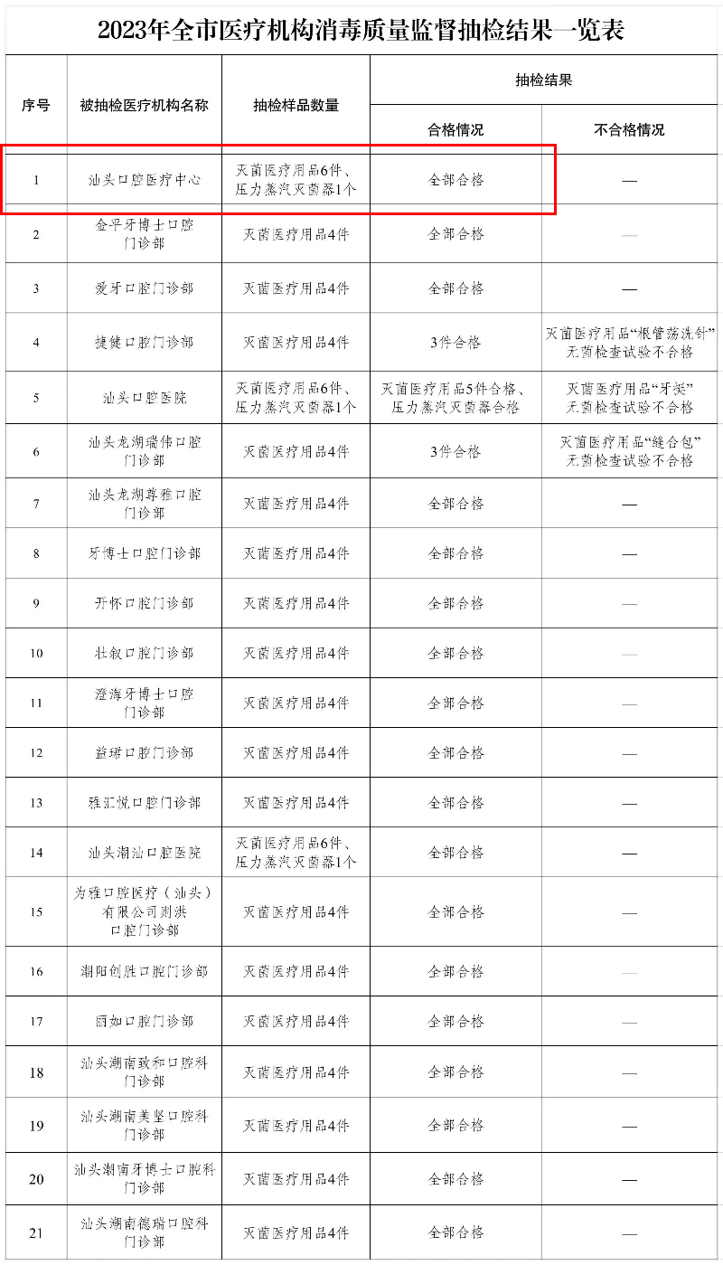 放心!汕頭口腔醫(yī)療中心消毒質(zhì)量抽檢全部合格