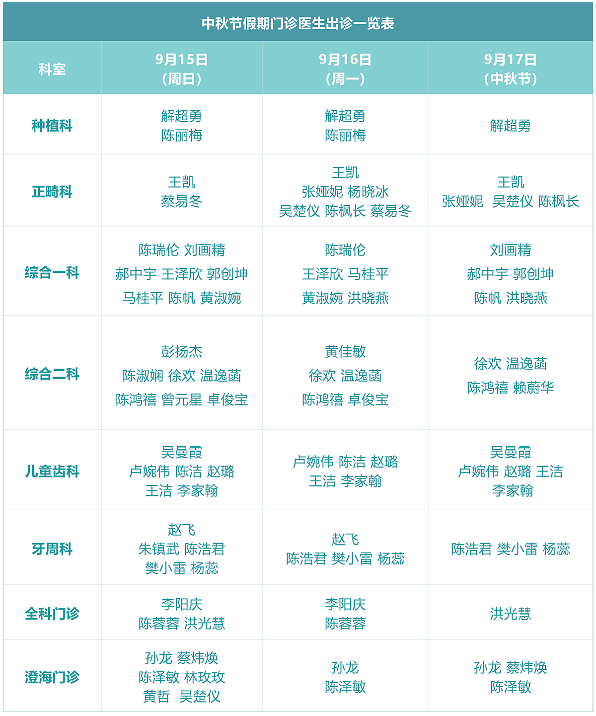中秋小長假即將到來,汕頭口腔醫(yī)療中心實行“無假日醫(yī)院”服務(wù),確保接診不間斷,為您和家人的口腔健康保駕護航。同時,為了回饋廣大患者的支持與厚愛,我們特別推出“美滿中秋月,幸福團圓時”中秋節(jié)特別活動,讓健康與歡樂伴隨您度過一個難忘的中秋。