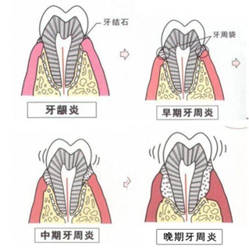 第三,牙齒有不同程度的松動,牙根暴露或牙齦紅腫、有膿,說明已發(fā)展到牙周炎;